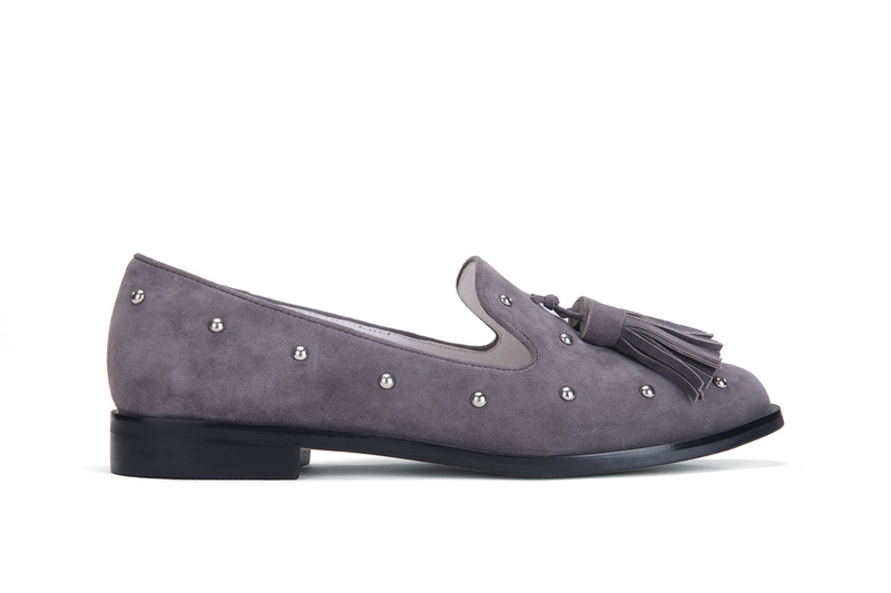 NK6009STUDDED SUEDE SLIPPERS(GREY)